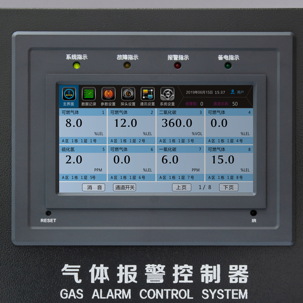 氣體報(bào)警控制器連接氣體探測(cè)器可持續(xù)監(jiān)測(cè)環(huán)境中的有毒有害氣體,根據(jù)接收到的輸入信號(hào)顯示被測(cè)氣體的濃度,并可通過(guò)Rs485數(shù)字信號(hào)與上位機(jī)通訊??刂破骺稍O(shè)定二級(jí)報(bào)警值,當(dāng)監(jiān)測(cè)到被測(cè)氣體濃度超標(biāo)時(shí)根據(jù)不同的報(bào)警級(jí)別發(fā)出聲光信號(hào)示警。數(shù)據(jù)記錄、報(bào)警記錄、系統(tǒng)日志以及報(bào)警通道均可通過(guò)菜單查詢,并可通過(guò)繼電器輸出來(lái)控制外部設(shè)備,如排風(fēng)系統(tǒng)或其它外部設(shè)備。