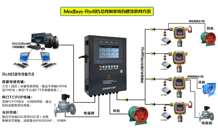 監(jiān)測(cè)集成方案:依托氣體報(bào)警控制器實(shí)現(xiàn)多點(diǎn)位監(jiān)測(cè)數(shù)據(jù)一機(jī)集成,觸摸屏操作系統(tǒng)菜單,巡檢主顯示屏顯示測(cè)量氣體濃度值、報(bào)警信息、故障信息、系統(tǒng)操作日志、各通道氣體所有參數(shù)信息(如氣體名稱(chēng),量程,報(bào)警值等。