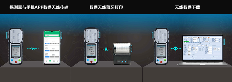 檢測數(shù)據(jù)可通過藍牙直接傳輸至安卓手機APP、客戶端監(jiān)控管理軟件及云端,實現(xiàn)人員定位、數(shù)據(jù)分析和應急處置。同時,藍牙也可連接便攜式打印機,實時打印數(shù)據(jù)以便管理與保存。此外,數(shù)據(jù)還能通過藍牙或USB接口傳輸至電腦客戶端的氣體監(jiān)測軟件,實現(xiàn)實時管理與查看。